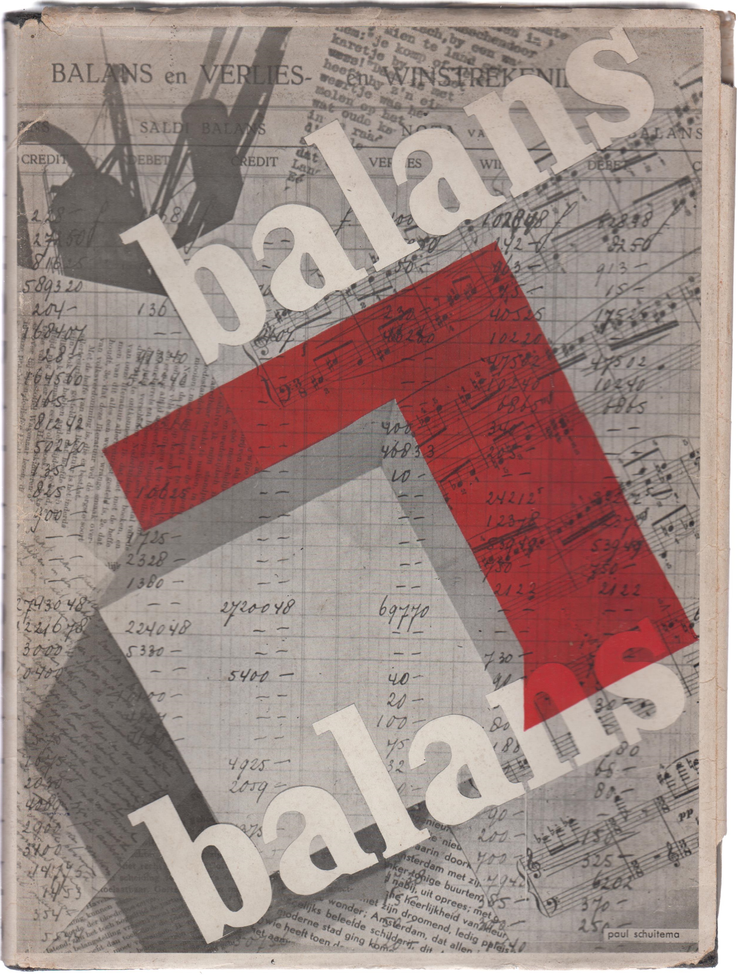 56. (SCHUITEMA, Paul). BINNENDIJK e.a., D.A.M. Balans. Algemeen jaarboek der Nederlandsche kunsten 1930-31. (Onder redactie van D.A.M. Binnendijk, Menno ter Braak, C.J. Kelk, Lou Lichtveld en Henrik Scholte). Maastricht, Leiter-Nypels, (1930). 27,0 x 20,0 cm. Oorspronkelijk linnen met stofomslag (ontwerp Paul Schuitema). 160 p. Geïllustreerd. Gedrukt onder leiding van Charles Nypels. 1e druk. Het zeldzame stofomslag zit iets ruim om de band en heeft wat scheurtjes op de vouwen. Naamstempeltje van Binnendijk op schutblad. Handgeschreven correctie door Binnendijk op p. 156.