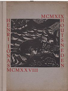 24. JONAS, Henri Houtsneden. MCMXIX – MCMXXVIII. (Maastricht, Leiter-Nypels, 1928). Karton. (124) p. Met 54 houtsneden, gedrukt in zwart en rood (1 in zwart/roze) in 150 genummerde exemplaren. 1e druk. Rug gerestaureerd met Ingres-papier. Band heeft heel lichte slijtagesporen. Nieuwe schutbladen.