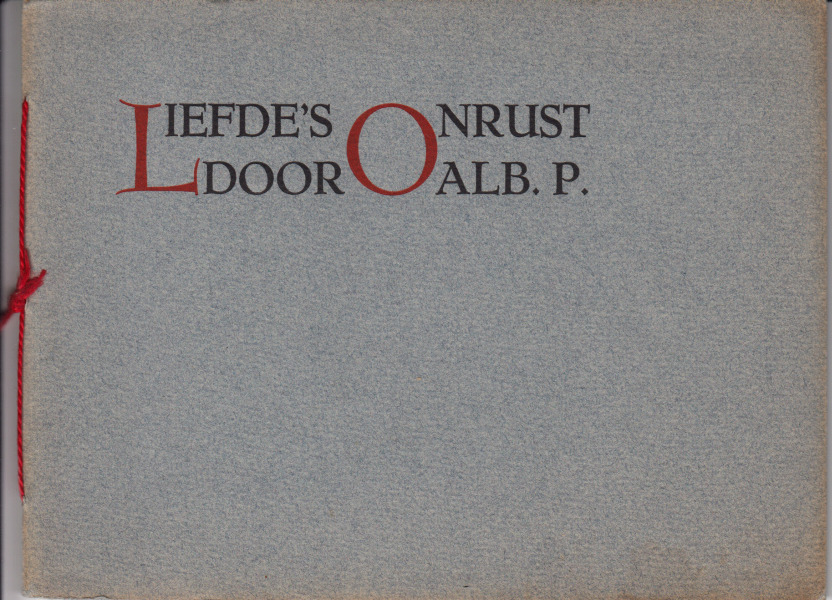 51. PLASSCHAERT, A. Als: Alb. P. Liefde’s onrust. (Maastricht, Nypels, 1928). 14 x 19 cm. Landscape format. Sewn with red string. 32 p. Set by Charles Nypels from Grotius type and printed in red and black on Ossekop laid paper in 50 numbered copies. First edition. Fine copy.