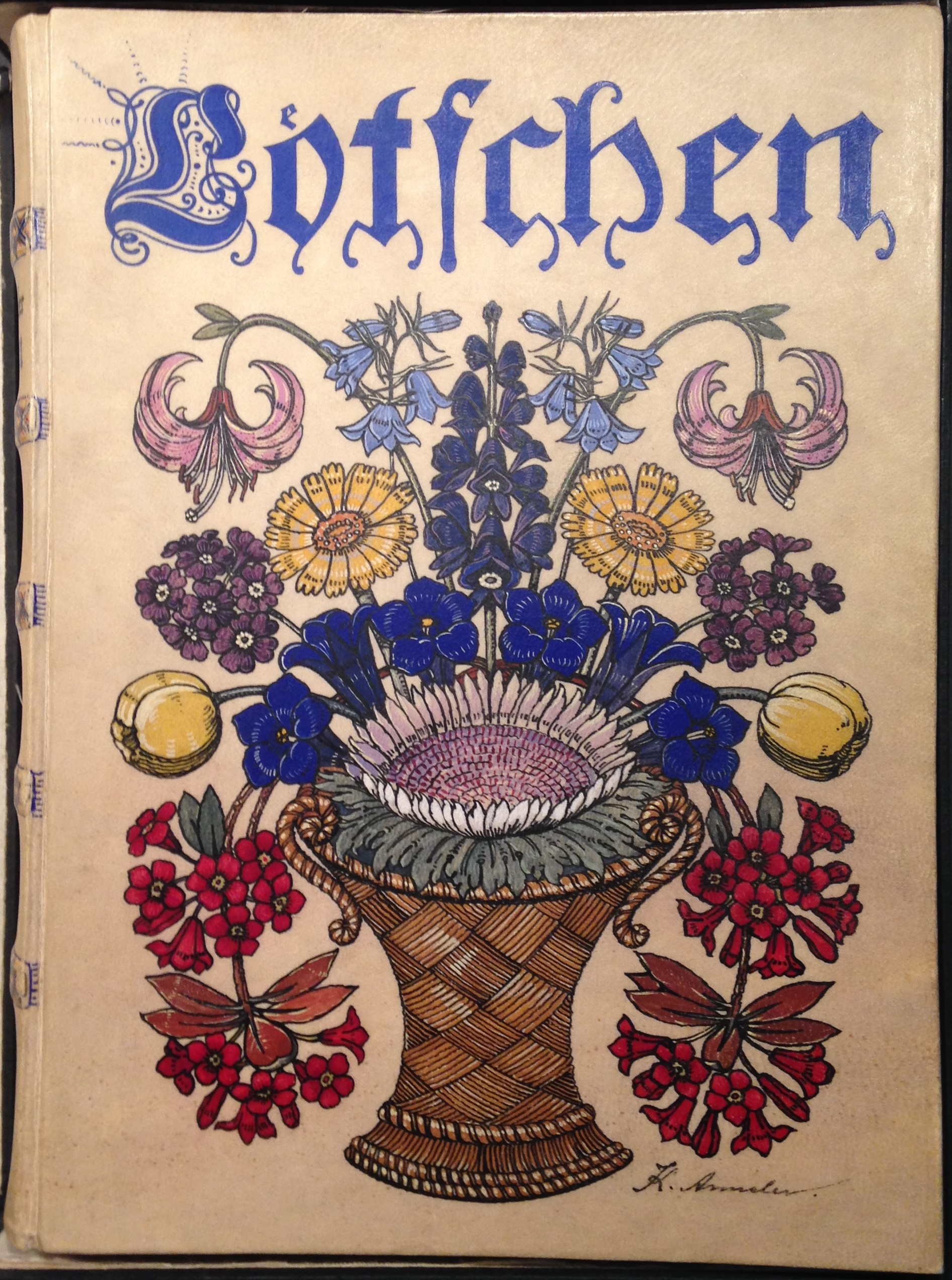 1 ANNELER, Hedwig & Karl Lötschen, das ist: Landes- und Volkskunde des Lötschentales. Text von Dr. phil. Hedwig Anneler, Bilder von Kunstmaler Karl Anneler. Bern, Akademische Buchhandlung von Max Drechsel, 1917. 36 x 26 cm. Beschilderd heelperkament, beschermd door een grote blauwe, contemporaine doos. (8), 360 p. Gedrukt op zwaar handgeschept papier. Twee kleurenafbeeldingen en vele illustraties in zwartwit. Van de totale oplage van 2050 exemplaren is dit een van de 50 genummerde luxe-exemplaren. 1e druk. Zware platten iets krom. Het naaiwerk laat hier en daar wat los. De pagina’s 339-350 zijn in een verkeerde volgorde gebonden, maar alle pagina’s zijn present.