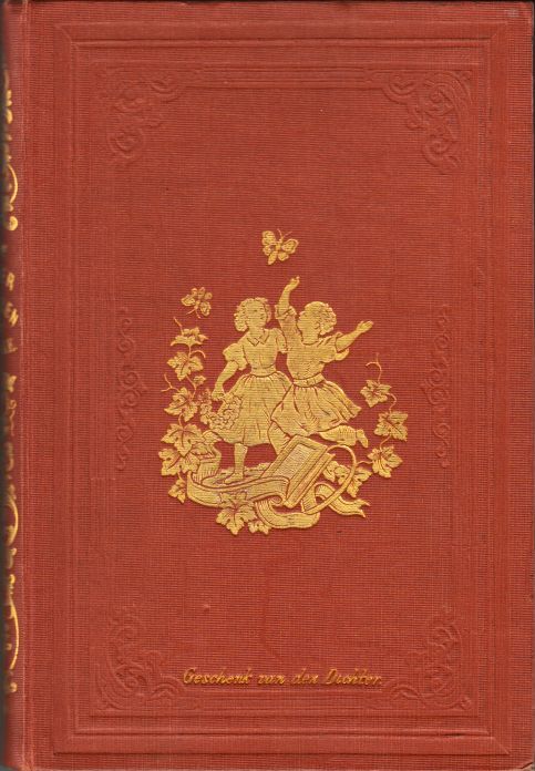 18 (BOEKBAND). (DANTE). WOLTERS, W.P. Beatrice. Leiden, S.C. van Doesburgh, 1874. Rood heelleer met Nederlands wapen dat door twee gekroonde leeuwen getoond wordt, en rijke versiering in goud. (6), 152 p. Alle sneden verguld. Boekbindersmerkje ‘J.A. Loeber, te Leiden’. 1e druk. Scherpe kanten heel licht versleten. Op het achterschutblad is door een verzamelaar een identificatiezegeltje geplakt.