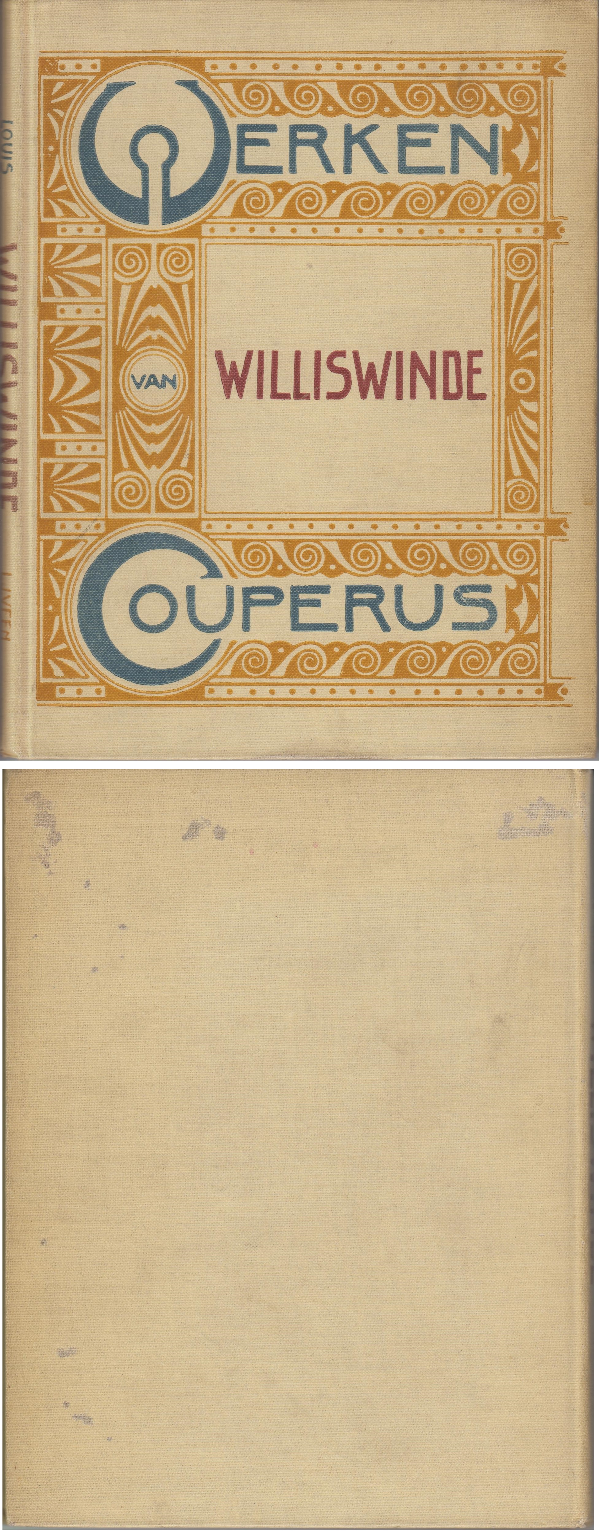 4. COUPERUS, Louis Williswinde. (Met een Voorrede van de auteur). Amsterdam, L.J. Veen, (1895). Gedecoreerd linnen [bandontwerp H.P. Berlage]. (VIII), 88 p. Niet afgesneden. 1e druk. Achterplat heeft enkele kleine vlekjes. Iets roest, verder mooi.