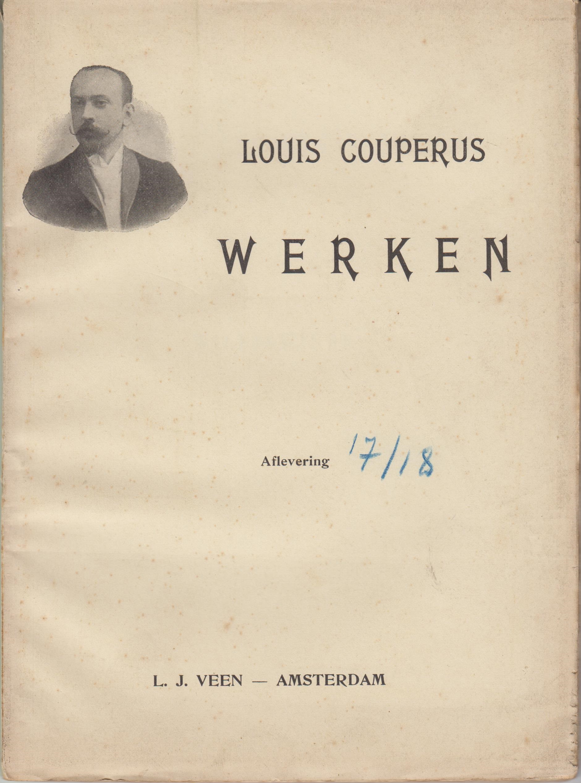 5. COUPERUS, Louis Williswinde. (Met een Voorrede van de auteur). Amsterdam, L.J. Veen, (1895). Ingenaaid. (VIII), 88 p. Niet afgesneden. Niet opengesneden. 1e druk. Omslag iets gesleten, maar een zeer goed exemplaar van een tere uitgave. Afleveringnummer (’17/18′) in blauw potlood op omslag.