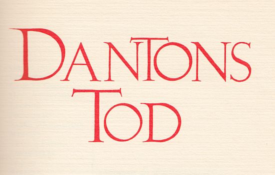 9. BÜCHNER, Georg Dantons Tod. Ein Drama. Maastricht, The Halcyon Press / A.A.M. Stols, 1930. 26 x 18 cm. Verguld linnen. (4), 120 p. Gedrukt in blauw, rood en zwart op Pannekoek in 225 genummerde exemplaren. Rug iets versleten. Mooi exlibris van M. Bury met vrouw en Griekse zuil.