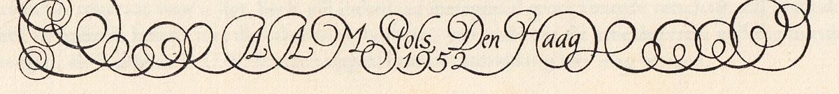 * Opvallende titelpagina en prachtige typografie met de grote Lutetia-letters, door A.A.M. Stols. Van Dijk 198.