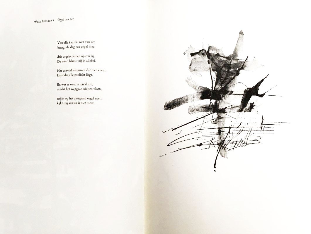 16. NOOTEBOOM, Cees, en Leo VROMAN Brooklyn Responsorium. (Met een nawoord van Cees Nooteboom). Banholt, (In de Bonnefant), 1990. Linnen (Binderij Phoenix). 32 p. Met de hand gezet uit de Bembo en de Diotima en gedrukt in rood en zwart op Zerkall in een oplage van 90 op de pers genummerde exemplaren. 1e druk.