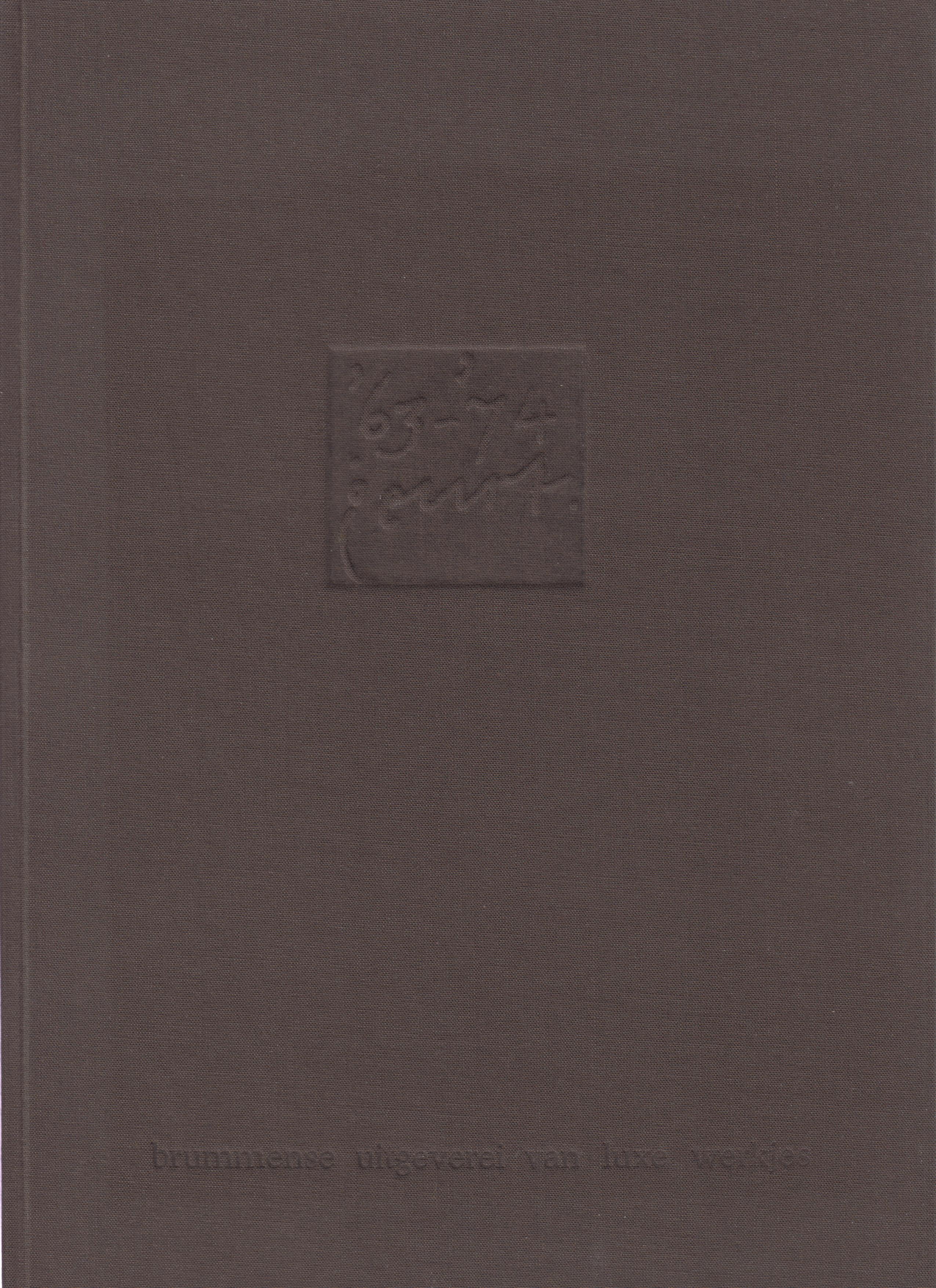 5. DIJK, Geurt van Wovon man nicht sprechen kann. [Beuningen], (Stichting Brummense uitgeverei van luxe werkjes, 1976). 13,2 x 8,7 cm. Blindgestempeld linnen. 96 p. Alle sneden zwart. Gedrukt in een oplage van 51 ongenummerde exemplaren. 1e druk.