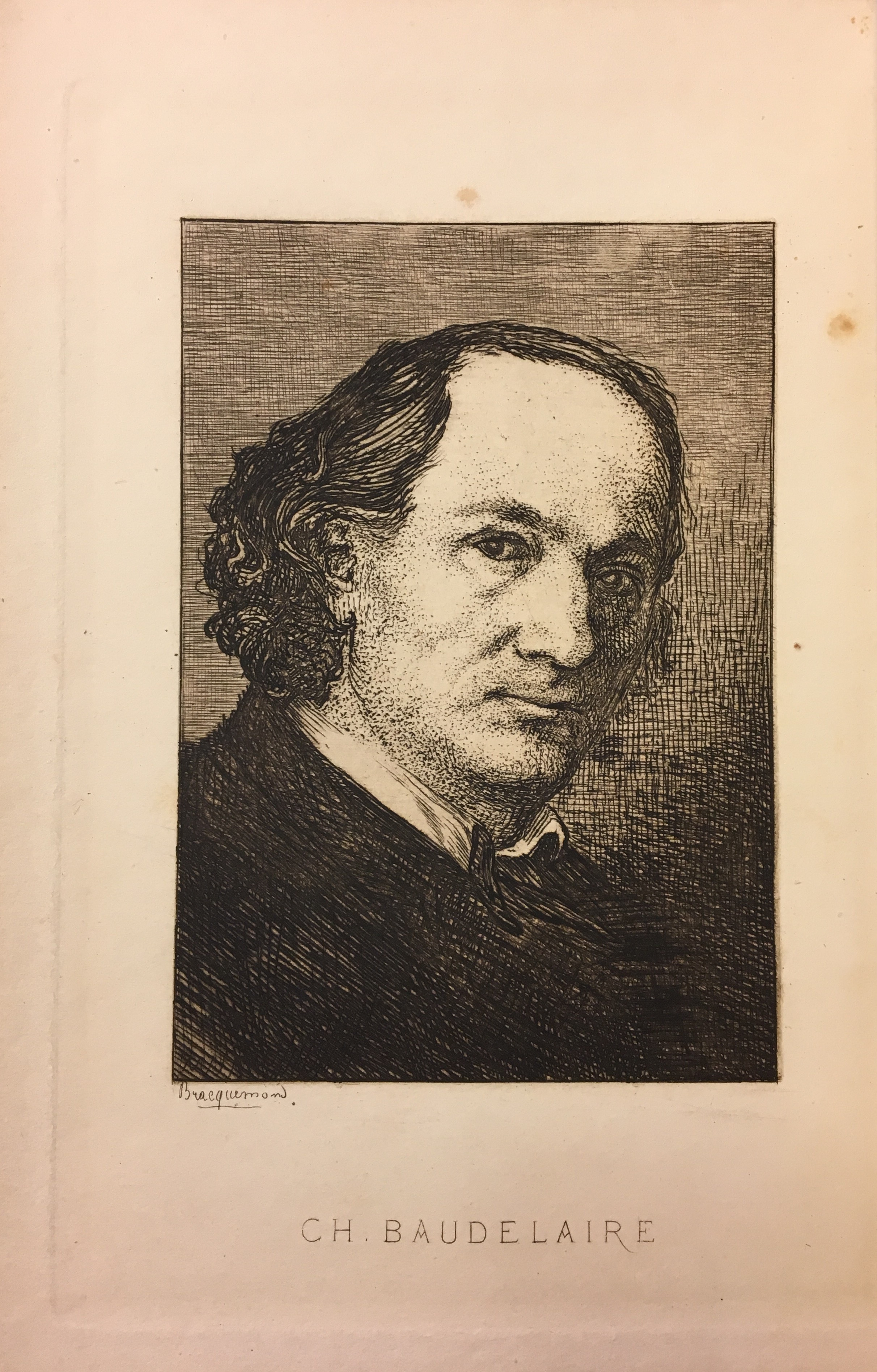 – Felix Bracquemond, Portrait of Charles Baudelaire. Original etching. Later print of the frontispiece of the 2nd edition of Les fleurs du mal from 1861? IMAGE