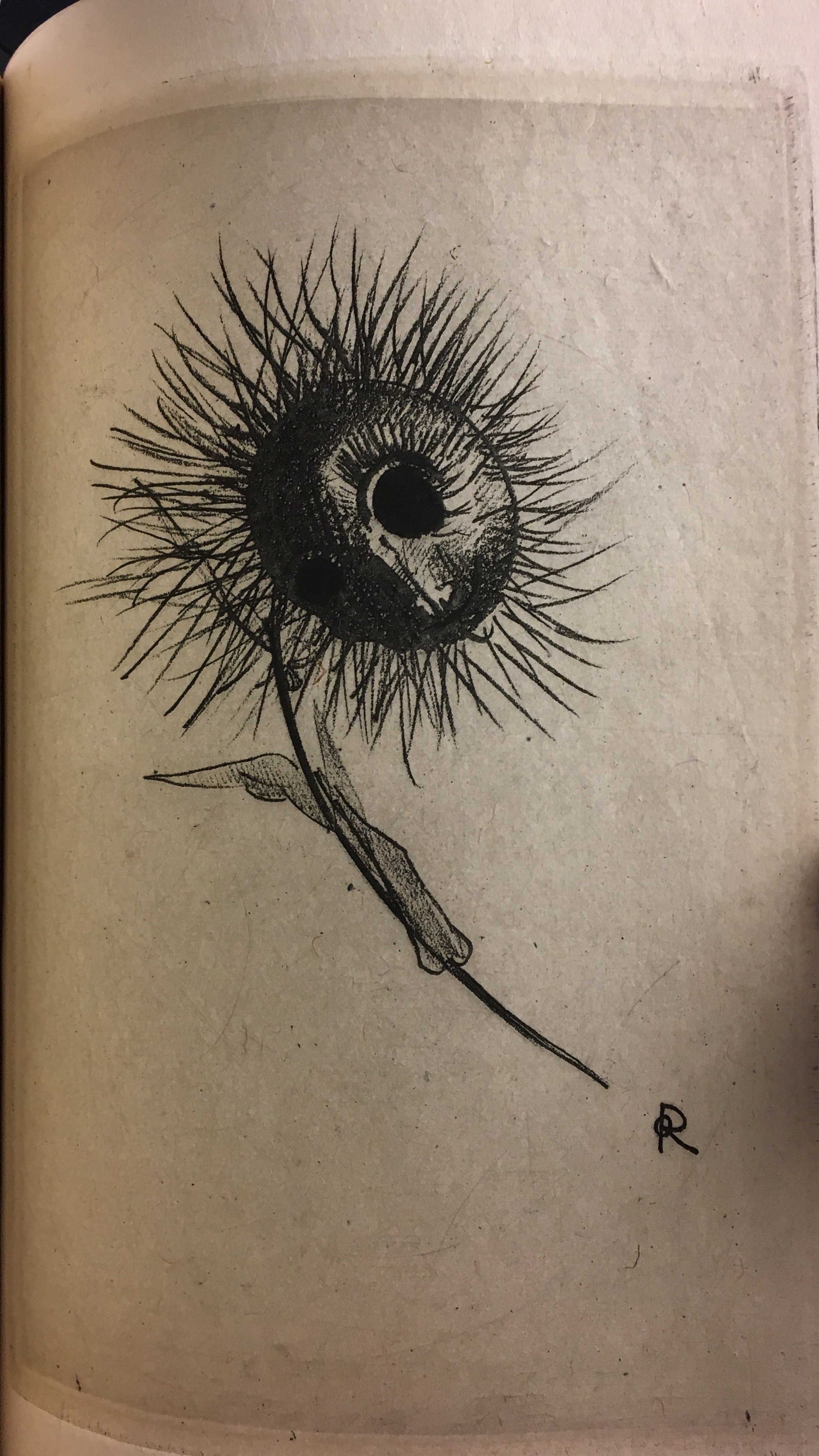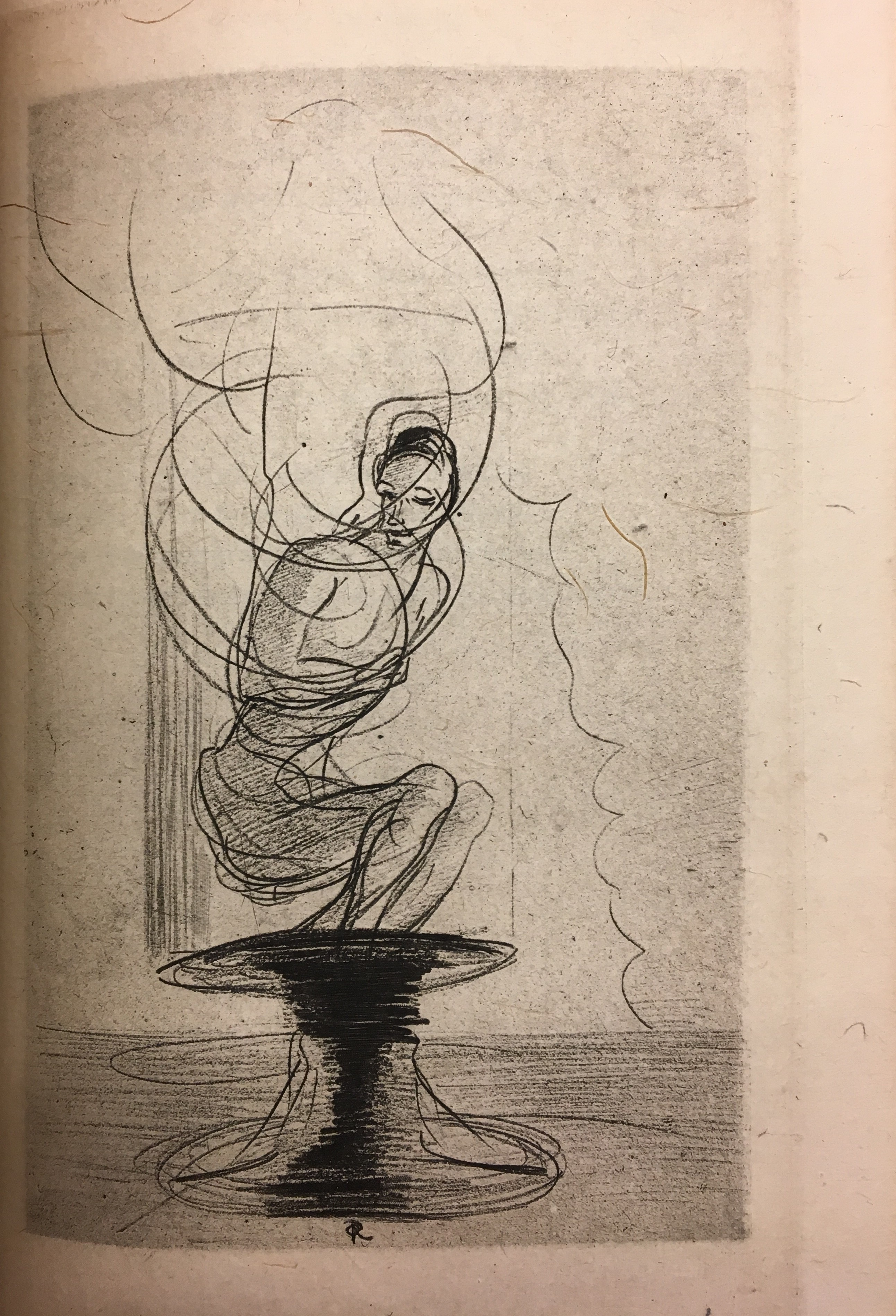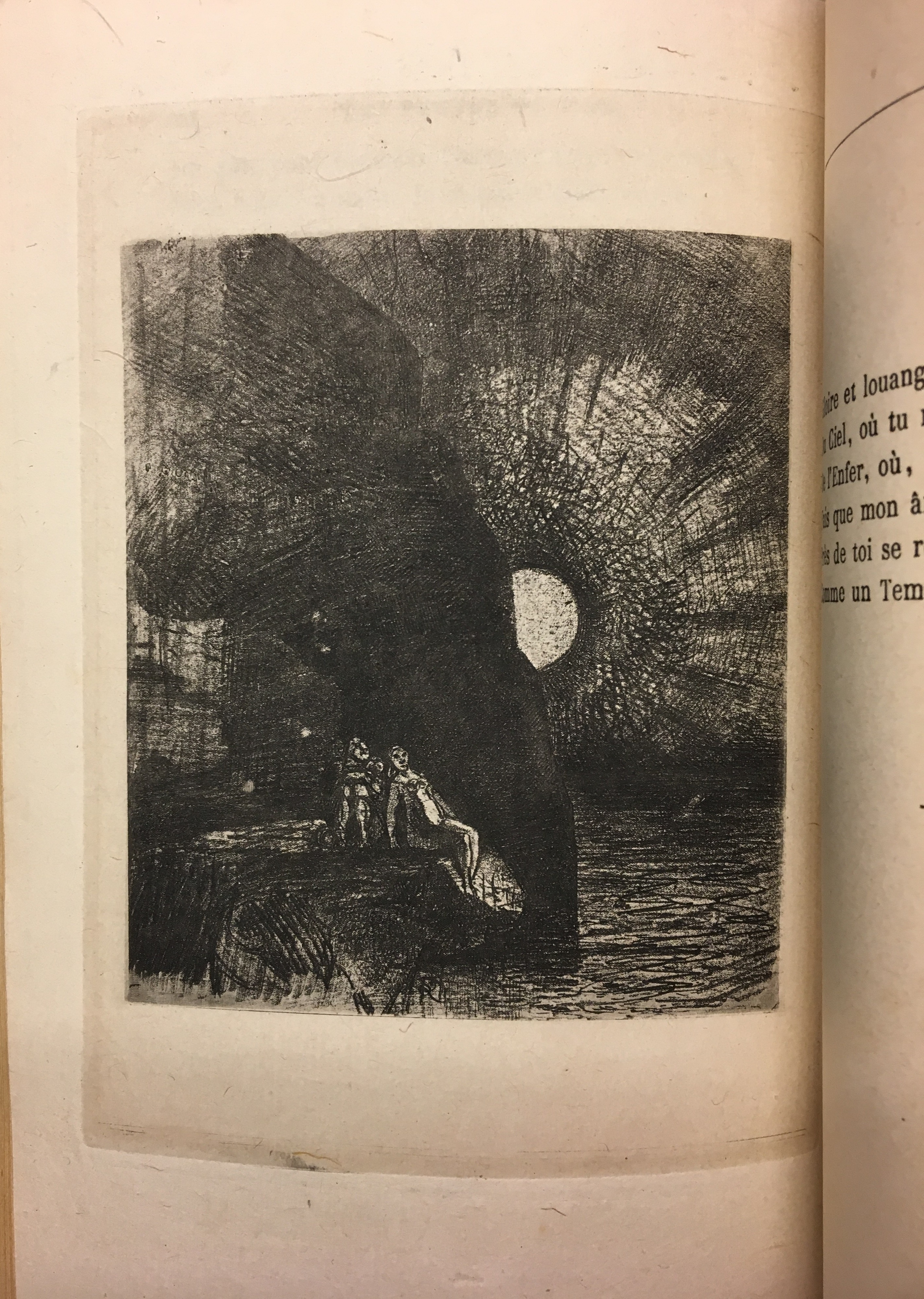 – Odilon Redon, Les Fleurs du mal. Interprétations par Odilon Redon. [Brussels, Edmond Deman, 1891]. Nine heliogravures on Chinese paper. These famous prints (illustration, illustration, illustration) first appeared in 1890 in large format in an edition of 50 [= 43] copies. A year later, in 1891, a reprint of smaller size was published in 100 copies, of which 80 on vélin, 10 on Japon and 10 on Chine. This is a set of these prints. In 1923, another reprint edition was published by Floury in Paris in 150 copies on larger paper. IMAGE | IMAGE | IMAGE