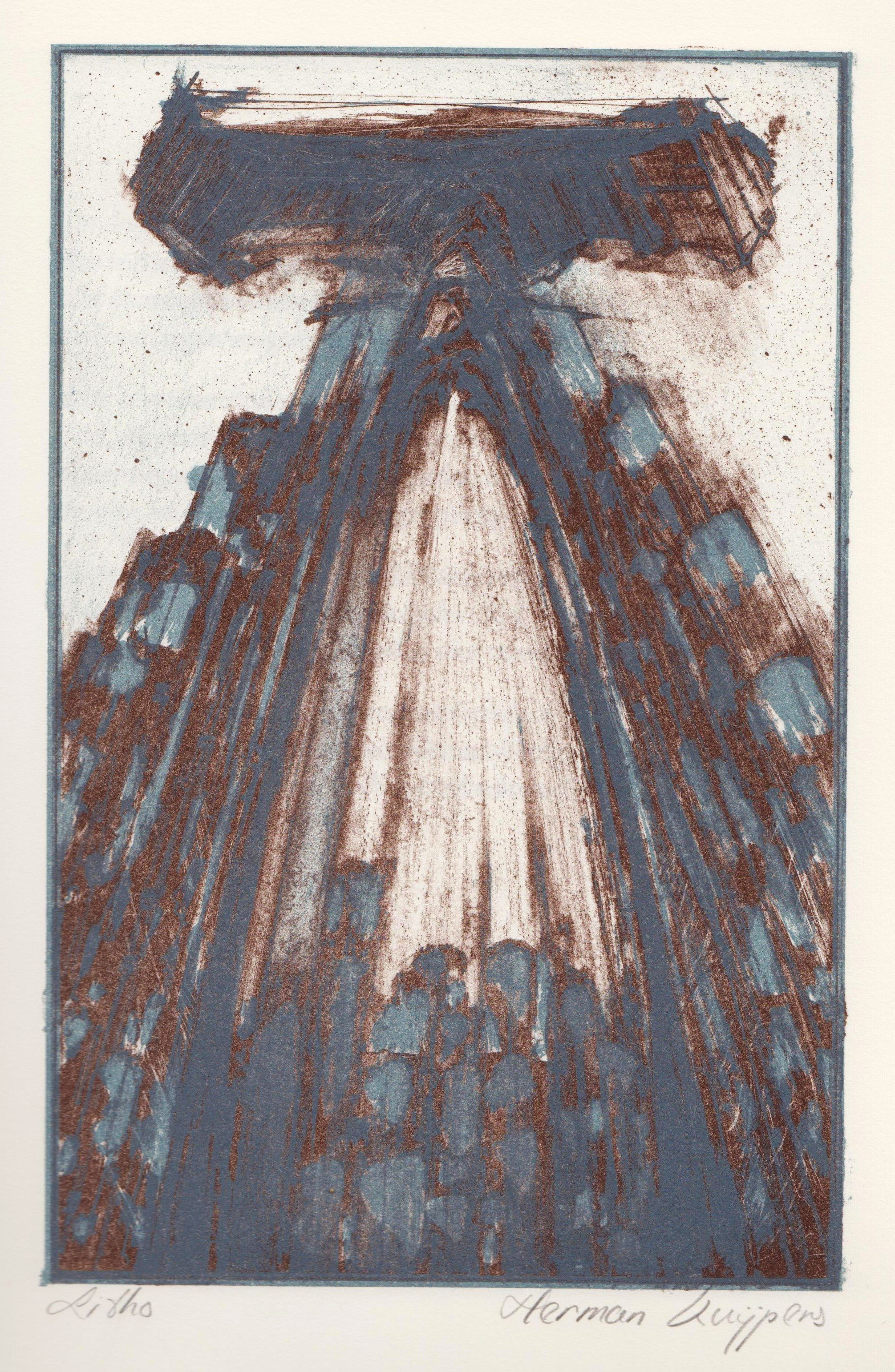 5. JELLEMA, C.O. Buiten denkbereik. (Met originele litho’s van Herman Kuijpers). (Bedum), Uitgeverij Exponent, 1986. 33,0 x 23,0 cm. Cahiersteek. (20) p. Met de hand gezet uit de Sabon en gedrukt in een oplage van 110 genummerde exemplaren. 1e druk.