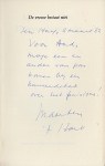 2. Meiliederen en propaganda verzen. Amsterdam, J.J. Bos & Co., [1915]. Geniet. 24 p. 1e druk. Omslag in tweeën en aan de randen beschadigd. Politieke dichtbundel. Zeer fragiele, op een koopje geproduceerde goedkope uitgave (‘prijs 10 cent’).