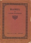 3. COUPERUS, Louis Babel. Amsterdam, Veen, [1901]. Ingenaaid (rood papieren omslag met zwarte belettering in groot, versierd kader). 200 p. 1e druk. Hapjes uit de rand van het omslag, rug gebarsten. Redelijk exemplaar van een zeldzame uitvoering.