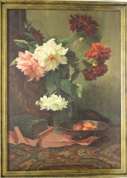 Kunstminnenden opgelet! We hebben in de verkoop ook een olieverfschilderij op doek van Ploeg-lid Alida Martens-Pott (afbeelding), door haar rechtsonder gesigneerd en gedateerd: ‘A. Pott Oct. ’16’ (afbeelding). Prijs: € 750.
