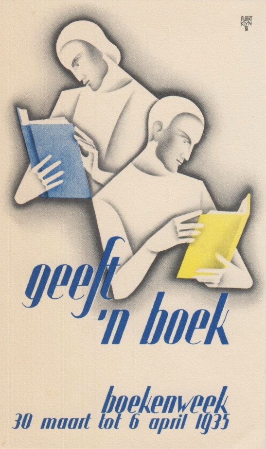 7. (BOEKENWEEK 1935) Boekenweekzegel 1935 (‘geeft ’n boek’). 12,5 x 7,5 cm. Ontwerp Albert Klyn.