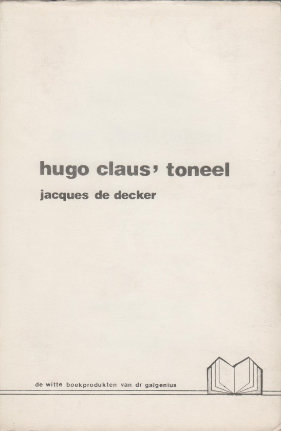 59. (CLAUS, Hugo). DECKER, Jacques de Over Claus’ toneel. Antwerpen, De Galge, 1971. Ingenaaid. 152 p. Onopengesneden. 1e druk.