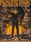 10. (GESTEL, Leo). WITTE, Dirk Mensch, durf te leven! Memento Vivere. Cabaretliedjes No. 14. Amsterdam, G. Alsbach & Co., (ca. 1918). 31,1 x 24,0 cm. Vouwblad. Stempeltjes achterop. Heel lichte gebruikssporen, maar niet afgesneden, zoals vaak het geval is met muziekbladen.