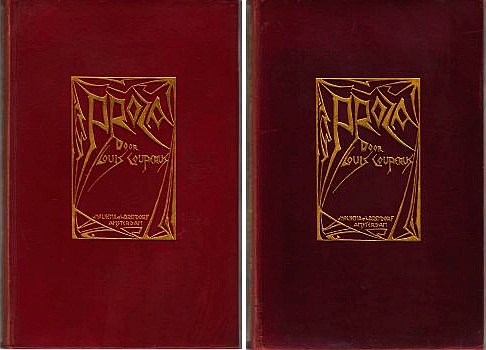 * Luxe-editie (‘Weelde-uitgave’) in heelleder met fraaie art-decobandstempeling. VV 320,4: ‘Het aantal luxe-exemplaren staat niet vast, maar zal niet veel meer dan enkele tientallen zijn geweest’. Het eerste deel van deze verzameling feuilletons werd samengesteld door Couperus zelf, die op 16 juli 1923 zou overlijden, de twee andere door zijn vrouw.