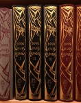 2. COUPERUS, Louis Proza. Amsterdam, Van Holkema & Warendorf, [1923-1925]. Drie delen. Oorspronkelijk verguld roodbruin heelleder, deel 1 en 2 met leeslinten (deel 3 werd daarvan niet voorzien). Koppen verguld. 324; 304; 320 p. 1e druk. Ruggen minimaal verschoten, leer heeft enkele kleine krasjes, beetje roest in het binnenwerk. Voorplat deel 1 deels verschoten. Helaas werd voor deze luxe-editie een zeer kwetsbare ledersoort gebruikt, waardoor perfecte sets eigenlijk niet bestaan.