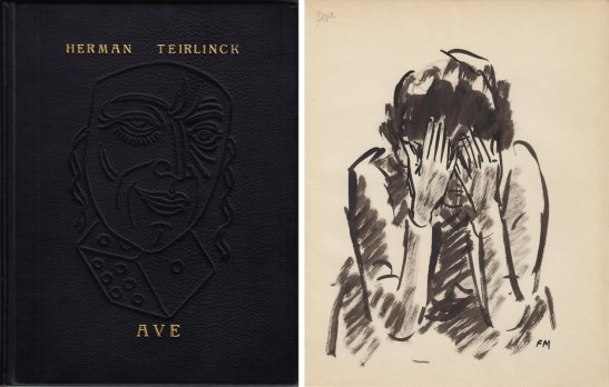 In deze nieuwsbrief vindt u wat we momenteel aan door Masereel geïllustreerde boeken in voorraad hebben. Van de twee toneeluitgaven van Herman Teirlinck die Masereel met (paginagrote) houtsneden verrijkte, hebben we (buitengewone) luxe-exemplaren: genummerd en gesigneerd, in verguld heelleder gebonden. Behalve een mooie provenance hebben deze exemplaren een unieke bijlage: een originele tekening door Frans Masereel.