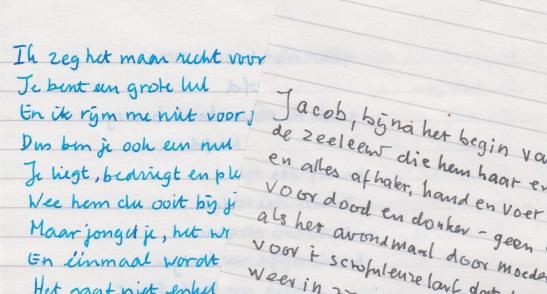 * Zeer scabreus en afkrakend gelegenheidsgedicht, gericht aan schrijver Jacob Groot. Die reageerde met een even negatief maar langer gelegenheidsvers (34 regels), dat hier is bijgevoegd. Het gedicht van Groot is gesigneerd ‘Jacob’ en gedateerd ‘190696’.