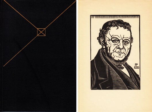 5. STENDHAL D’un nouveau complot contre les industriels. Maestricht/ Paris, Stols/ Aveline, 1925. Decorated morocco (Pau Groenendijk). Original wrappers preserved. (2), 30 p. With a portrait, a vignette and an initial engraved in wood by J. Franken Pzn. Set from the Erasmus and printed in red and black in 415 numbered copies. Fine condition.
