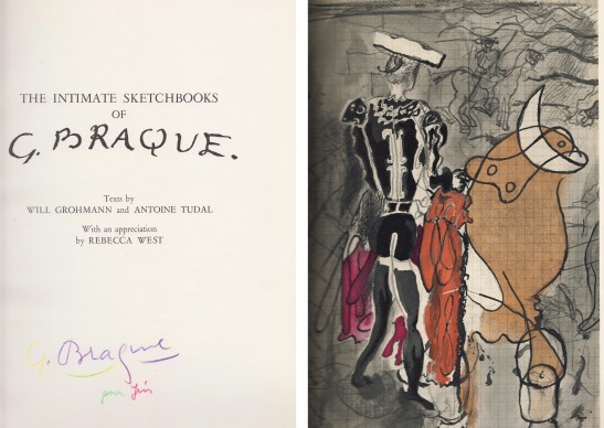 3. BRAQUE, Georges The intimate sketchbooks of G. Braque. (Carnets intimes). Texts by Will Grohmann and Antoine Tudal. With an appreciation by Rebecca West. New York, Harcourt, Brace and Company, (1955). 36 x 27 cm. Original boards. 158 p. Original lithographs and heliogravures in colors.