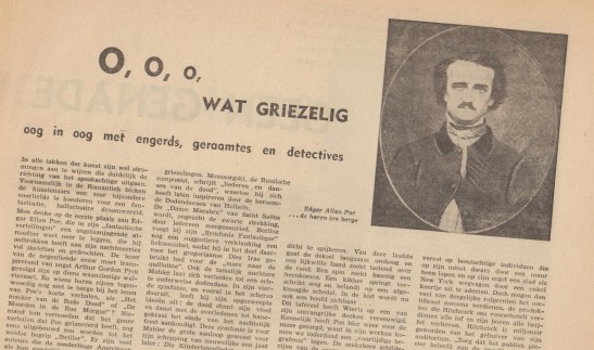 3. BROUWERS, Jeroen ‘O, o, o, wat griezelig. Oog in oog met engerds, geraamtes en detectives’. P. 3 in: Salvo. Katholiek weekblad voor de Nederlandse strijdkrachten, jaargang 13, aflevering 38, (20 juni 1960). [Den Haag, Hoofdbureau Katholiek Thuisfront], 1960. Gevouwen. 8 p. Geïllustreerd.