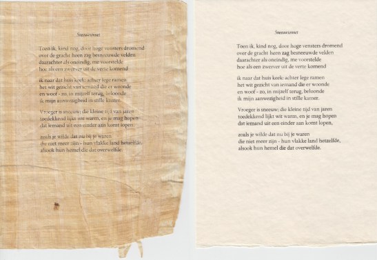 16. JELLEMA, C.O. Sneeuwsonnet. [Den Haag], (Statenhofpers, 1997). Plano in omslag. Met de hand gezet uit de Spectrum en gedrukt door Jaap Schipper in een oplage van 25 gesigneerde exemplaren.