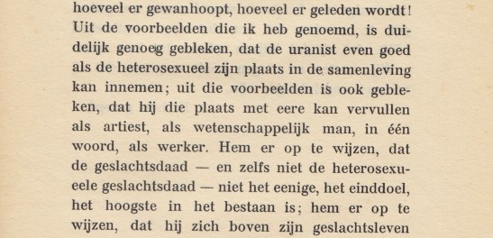 5. ALETRINO, A. Hermaphrodisie en uranisme. Voordracht, den 5en Juni 1908 te Amsterdam voor de candidaten van de Juridische Faculteit van het A.S.C. gehouden. Amsterdam, Van Rossen, 1908. Karton met origineel omslag opgeplakt. 80 p. 1e druk. Met bibliotheekstempel en exlibris van Philip Tuyt (ontwerp Cor Alons).