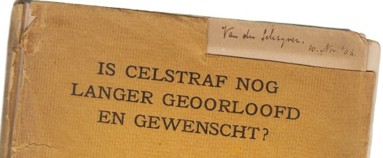 7. ALETRINO, A. Is celstraf nog langer geoorloofd en gewenscht? Amsterdam/ Leipzig, Maas & Van Suchtelen, 1906. Ingenaaid. (8), 172 p. 1e druk. Boven- en onderzijde rug iets beschadigd, maar verder zeer goed. Stempels ‘Ter Recensie’ op omslag en titelpagina.