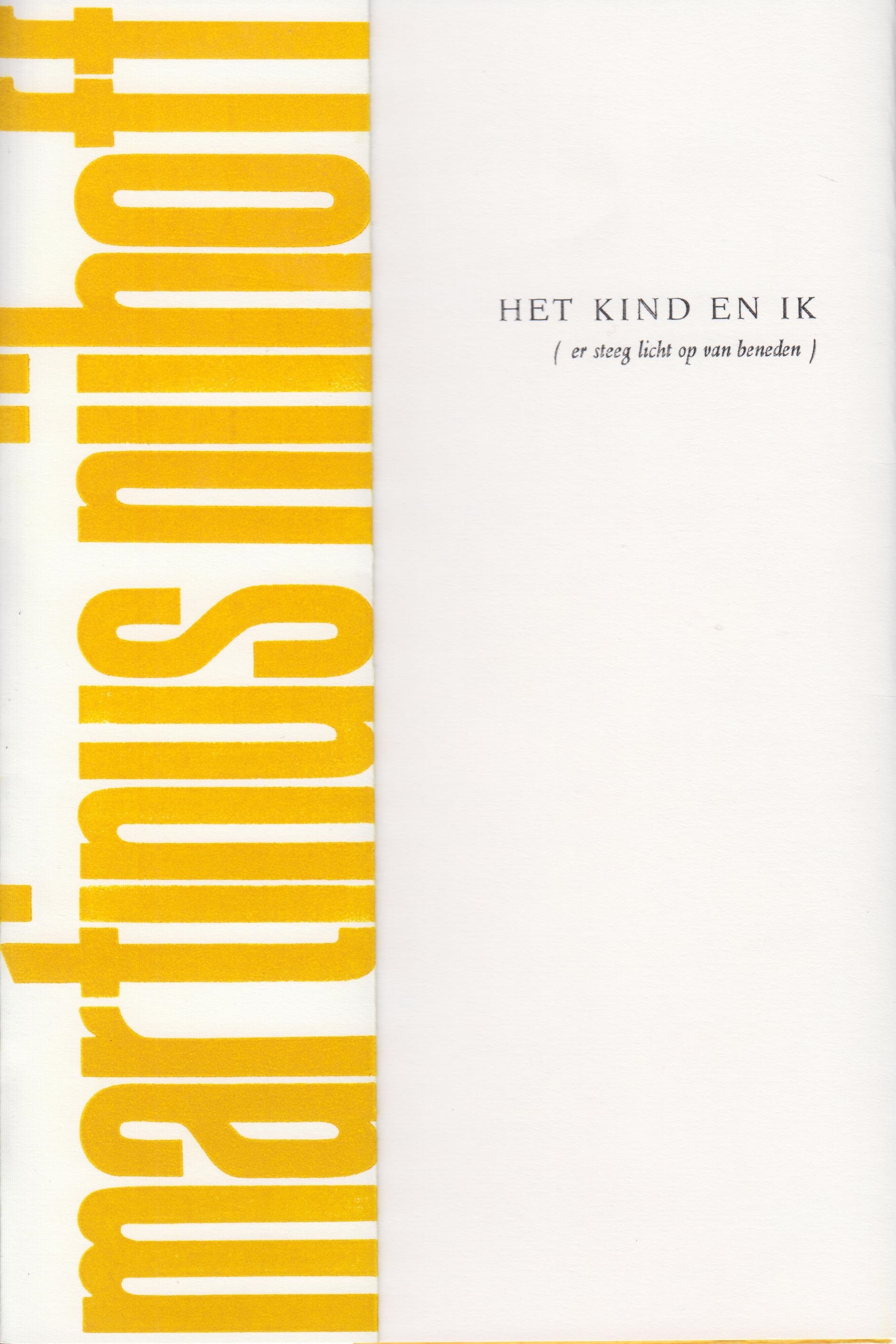 24. NIJHOFF, M. Het kind en ik. (Met een genummerd en gesigneerd kleurendruksel door Doortje de Vries). (Apeldoorn, Eikeldoorpers, 2011). Uitvouwbare prent in omslag (ingenieuze bindwijze). Met de hand gezet uit de Lutetia en gedrukt in een oplage van 60 genummerde exemplaren (‘en X prenten’).
