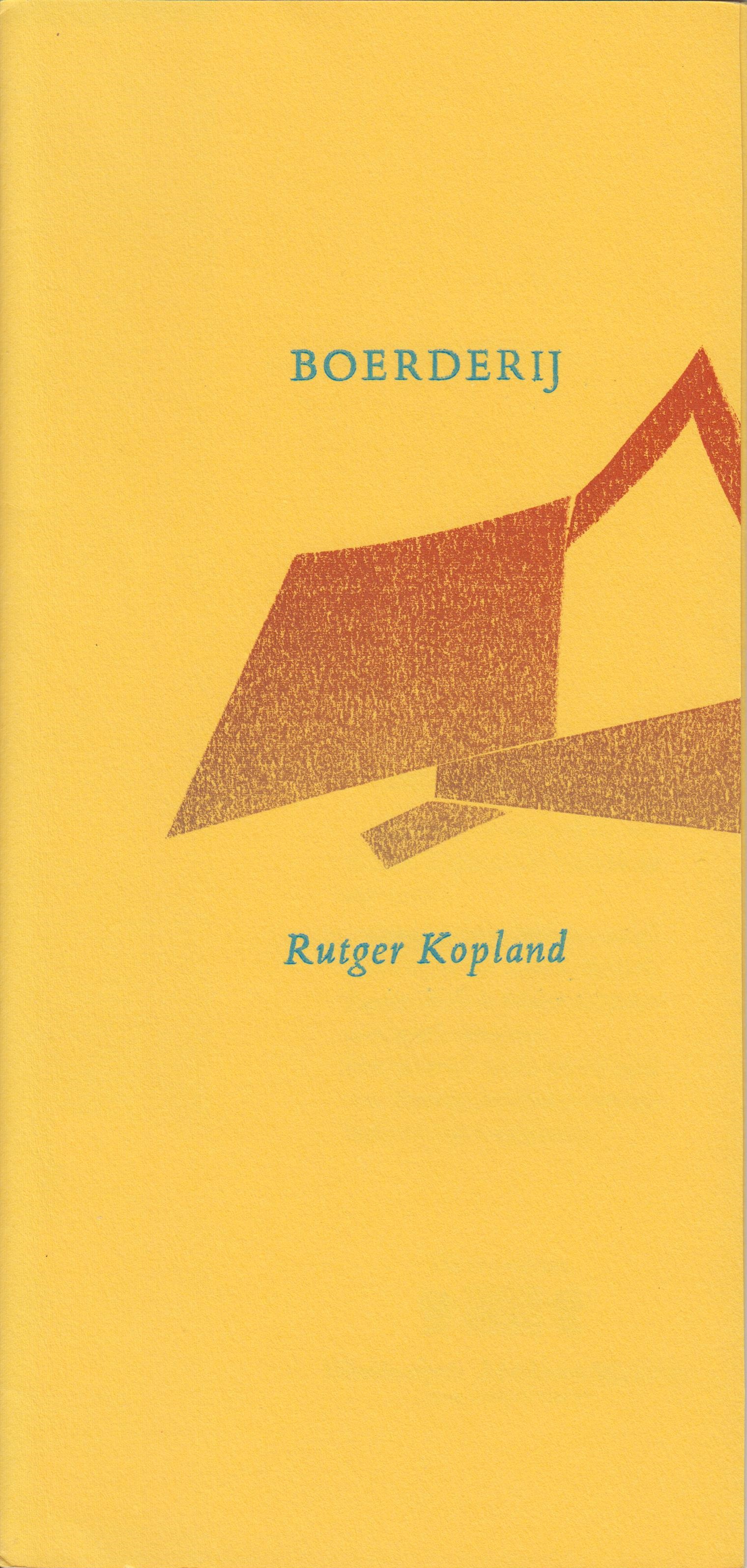 19. KOPLAND, Rutger Boerderij. (Met een genummerd en gesigneerd kleurendruksel door Doortje de Vries). (Apeldoorn, Eikeldoorpers, 2009). Uitvouwbare prent los in omslag. Met de hand gezet uit de Bembo en gedrukt in een oplage van 100 genummerde exemplaren.