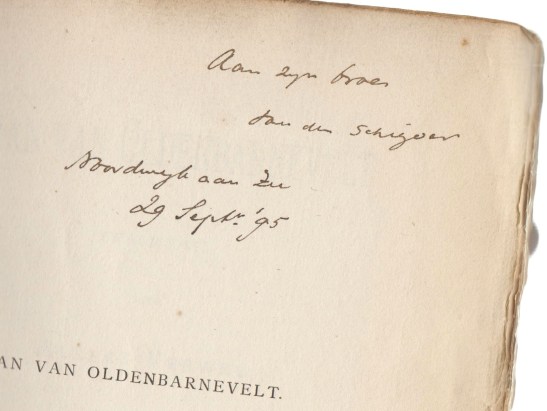 * Exemplaar met op titelpagina, in het handschrift van Albert Verwey: ‘v.d.Ss. [= van de Schrijvers]’, een opdrachtje dus in één van de meest geruchtmakende publicaties van de Tachtigers!
