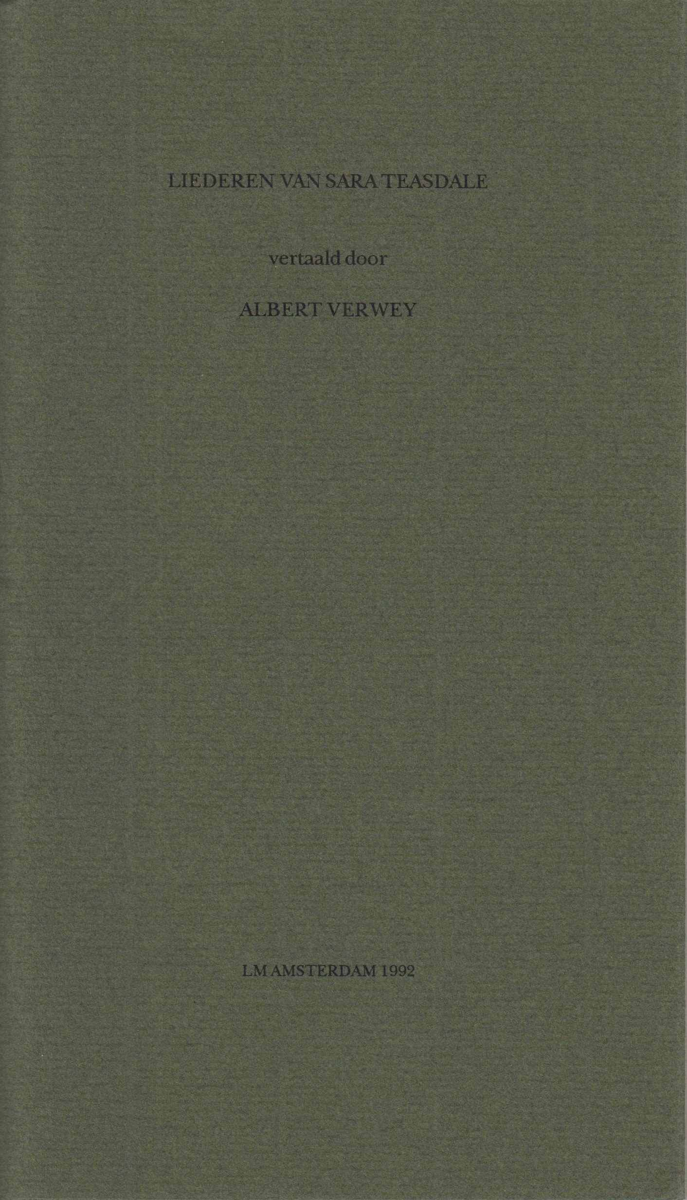 18. VERWEY (vertaling), Albert Liederen van Sara Teasdale. Amsterdam, LM, 1992. Cahiersteek. 28 p. Gezet uit de Baskerville en gedrukt in een beperkte oplage.