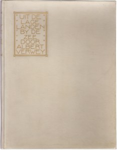 14. VERWEY, Albert Uit de lage landen bij de zee. Amsterdam, W. Versluys, 1904. Oorspronkelijk verguld heelperkament [ontwerp H.P. Berlage]. (2), 106 p. Niet afgesneden. Gedrukt door Joh. Enschedé en Zonen te Haarlem in een oplage van 200 exemplaren. 1e druk. Mooi exemplaar. Exlibris M.B.B. Nijkerk [ontwerp A.A.M. Stols].