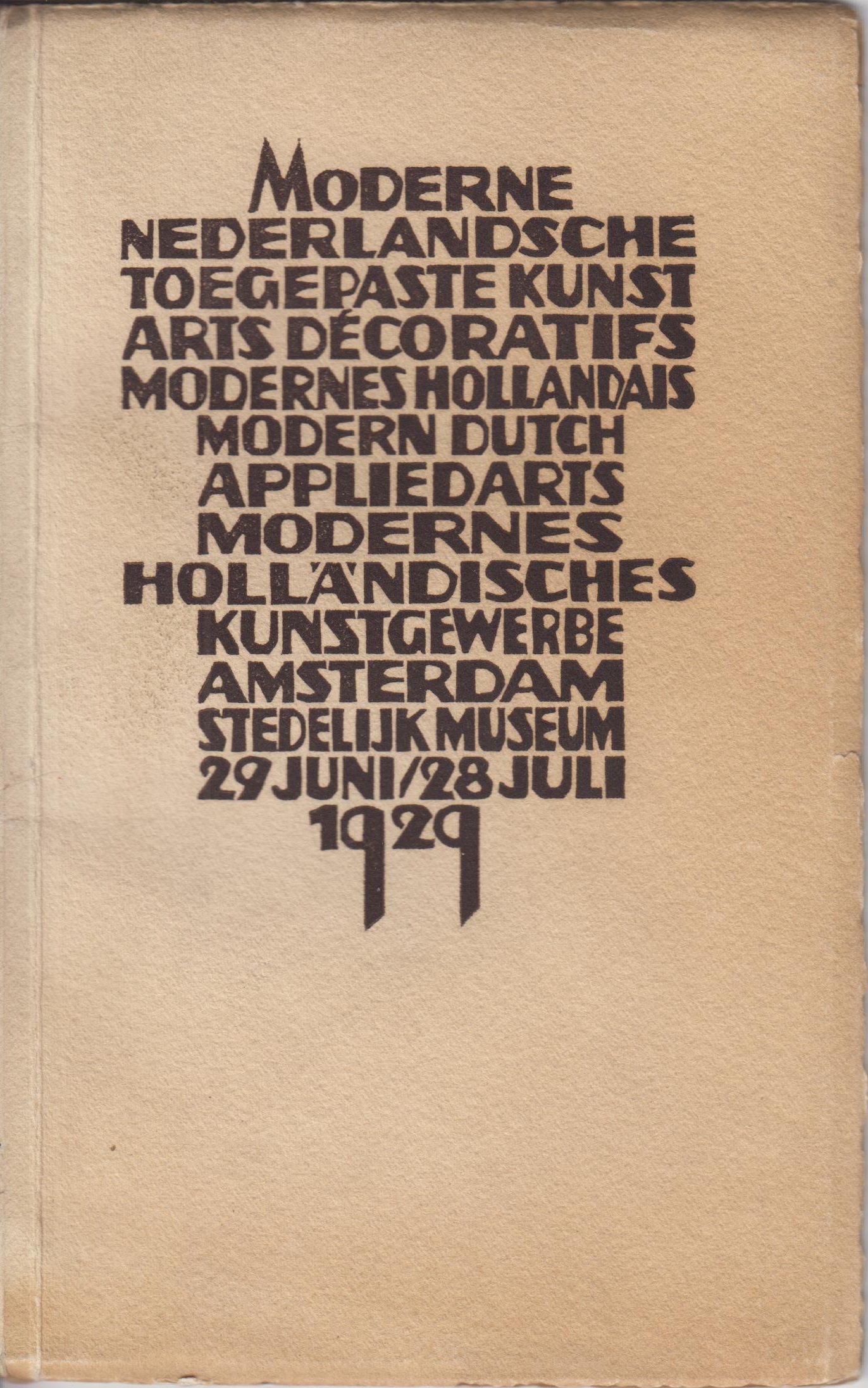 96 VOSSEN, André van der Moderne Nederlandsche Toegepaste Kunst – Arts Décoratifs Modernes Hollandais – Modern Dutch Applied Arts – Modernes Hollandisches Kunstgewerbe – Amsterdam Stedelijk Museum 29 juni – 28 Juli 1929. Amsterdam, Stedelijk Museum, 1929. 19 x 12 cm. Ingenaaid. (4), 52 p. Geïllustreerd. Met bijbehorend erratablad (4 p.). 1e druk. Net exemplaar.