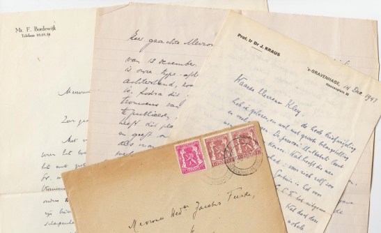 2. J. Kraus aan ‘Waarde Mevrouw Kley’, briefhoofd ‘Prof. Ir Dr J. Kraus/ ‘s-Gravenhage’, gedateerd ’14 Dec. 1947′, 36 regels tekst. Een uitvoerige waardering van het boek. Jacob Kraus (1861-1951) was onder meer minister van Waterstaat (1905-1908).