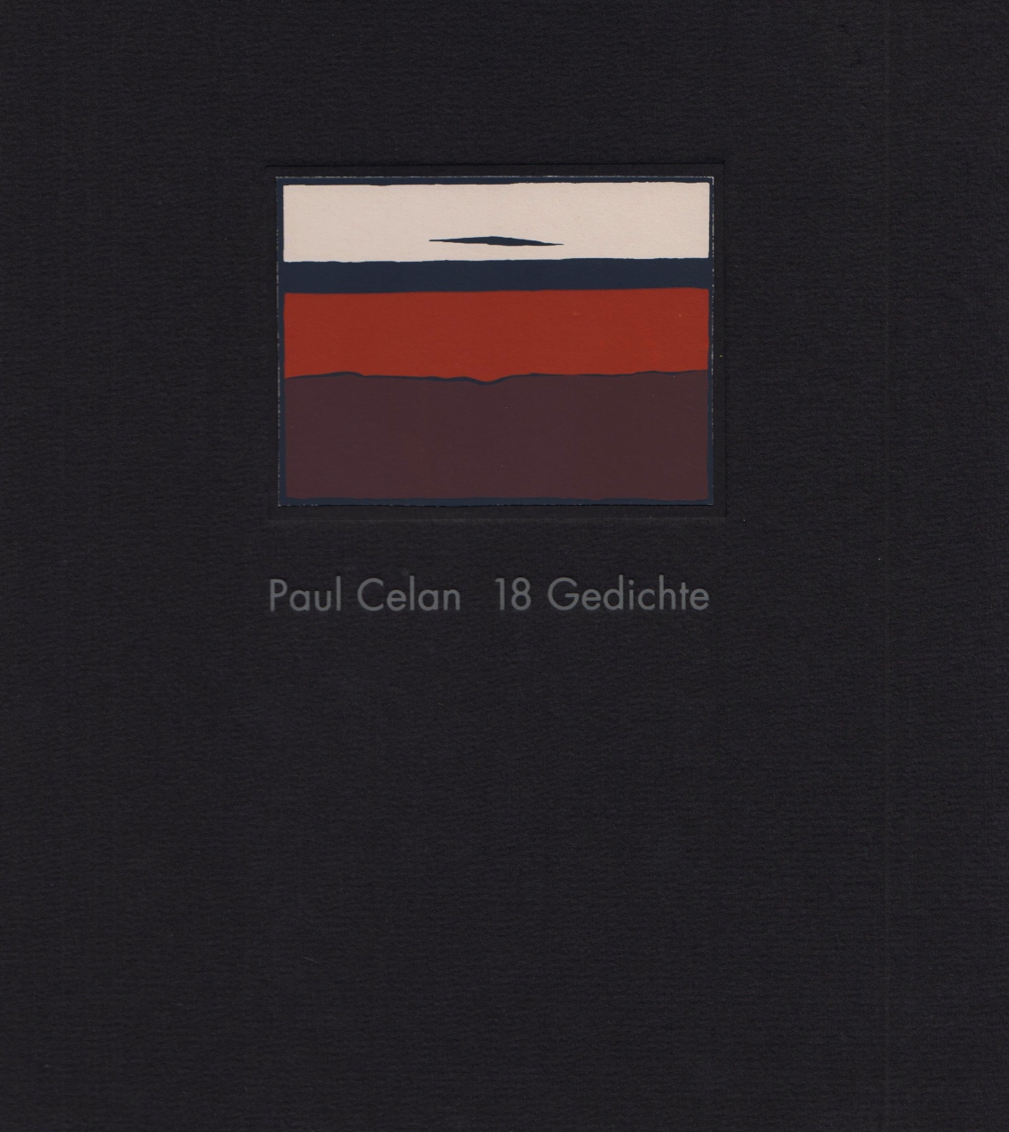 7. CELAN, Paul 18 Gedichte. Hamburg, Maximilian Gesellschaft, 1997. 24 x 22 cm. Originele papieren band met versiering en transparant stofomslag. 40 p. Gezet uit de Futura. Met 12 kleurenzeefdrukken van Hans Schreiner en een nawoord van Thomas Sparr. Gedrukt in 1400 exemplaren, gesigneerd door de illustrator. Mooi exemplaar.