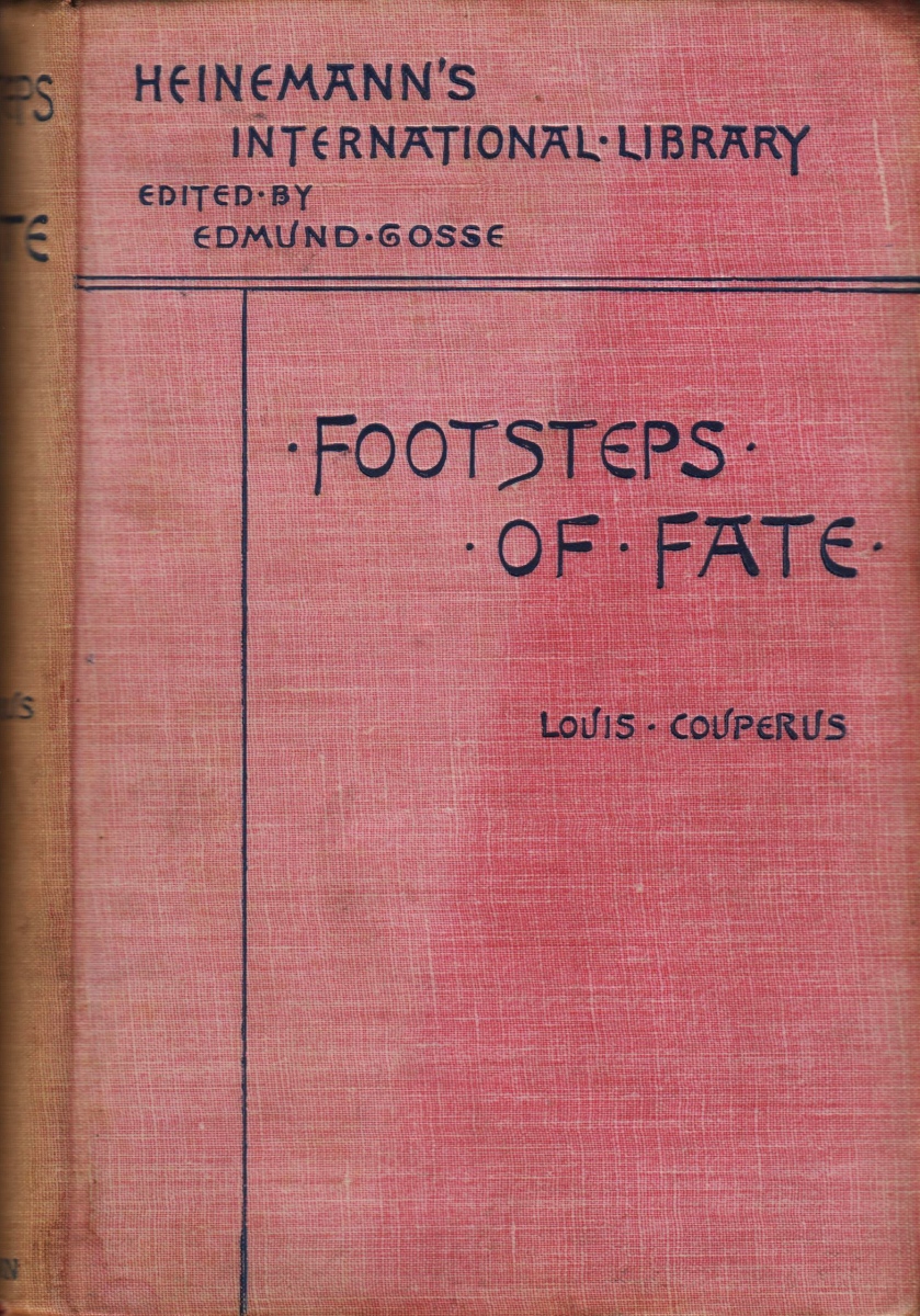 11. COUPERUS, Louis Footsteps of Fate. (Noodlot). Translated from the Dutch by Clara Bell. (Met een voorwoord van Edmond Gosse). London, William Heinemann, 1891. Linnen. XVI, 272, (4), 16 p. 1e druk. Rug verbruind en onderaan wat versleten, voorplat deels verbleekt. Voorin potloodinscriptie.