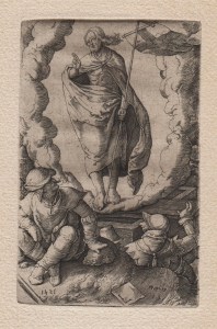 36. LEYDEN, Lucas van De Passie van Ons Heer (…) zijnde een suite van XIV koperplaten die van de originelen werd gedrukt. (Met een toelichting door Frank van den Wijngaert). Antwerpen, Nederlandsche Boekhandel, 1948. 21,7 x 15,2 cm. Losbladig in overslagmapje (als uitgegeven). (8), VIII p. + 14 prenten. Gedrukt in rood en zwart op handgeschept en ‘in de open lucht gedroogd’ papier in een oplage van 250 op de pers genummerde exemplaren. De tekst werd gedrukt door de Sinte-Catharinadrukkerij in Brugge, het ontwerp van de titelpagina is van de hand van Maurice Gilliams.