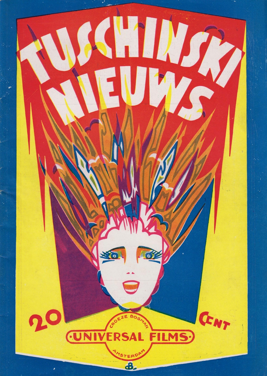 43. TUSCHINSKI NIEUWS Tuschinski Nieuws. 10 nrs. (1927-29). Amsterdam, Theater Tuschinski, 1927-29). Tweewekelijks tijdschrift. Dit zijn de nummers I/7, 12, 13, 14, 18, 35, 38; II/3; III/1 en 20. 27 x 20 cm. Kleurige originele omslagen (ontwerp Pieter den Besten). 36 p. per nummer. Rijk geïllustreerd met foto’s en tekeningen (o.a. Pieter den Besten, Hans Borrebach, Octave De Coninck, Eldon Kelley). Hier en daar een vouwtje, maar in prima staat.