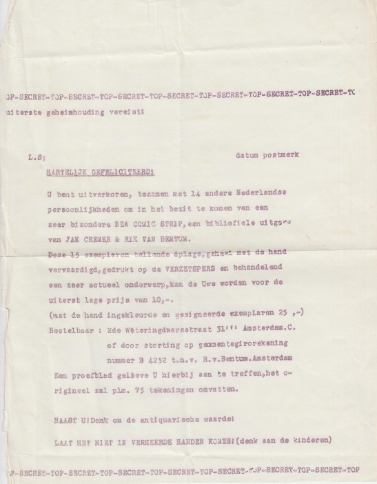 In het tijdschrift Ratio van april 1964 bekende Cremer dat de beoogde oplage nooit was gehaald. ‘Ja, daar zijn dus een stuk of vier, vijf van. Heb ik zelf getekend en de tekst er bij gemaakt. ’t Was een pornografische strip, weet je wel. Dat zou gaan in vijftig [sic] exemplaren, maar dat is verder niet doorgegaan want ik had er geen zin meer in.’