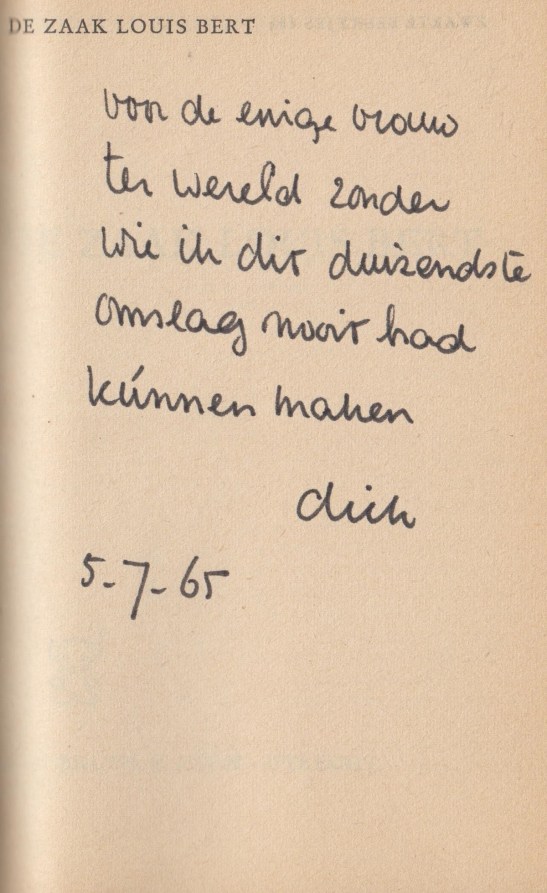 ¶ Opdracht van de auteur in balpen op de Franse titel: ‘Voor Thérèse/ uit een rotjaar/ naar een beter,/ van Renate/ 7/11/73’.