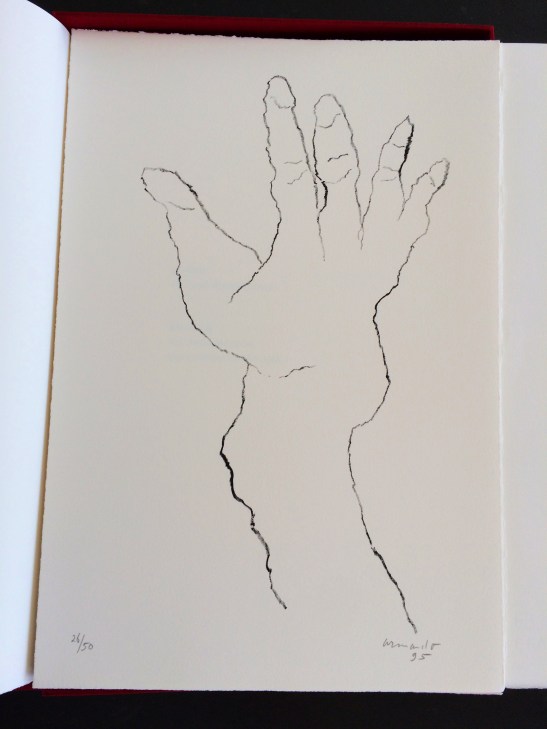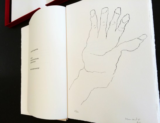 De gedichten van Armando groeien van de dienstbare hand langs de gretige en de woedende – naar de hand des aanstoots, met zijn lithografie niet dienend, maar de poëzie leidend als dansers op het witte papier.