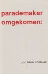 20. VOGELAAR, Jacq Firmin Parademaker omgekomen:. Amsterdam, Jaap Meijer, 1973. Ingenaaid met stofomslag. (4), 20 p. Met de hand gezet uit de Nobel en gedrukt in rood en zwart door Jaap Meijer in een oplage van 25 genummerde exemplaren.