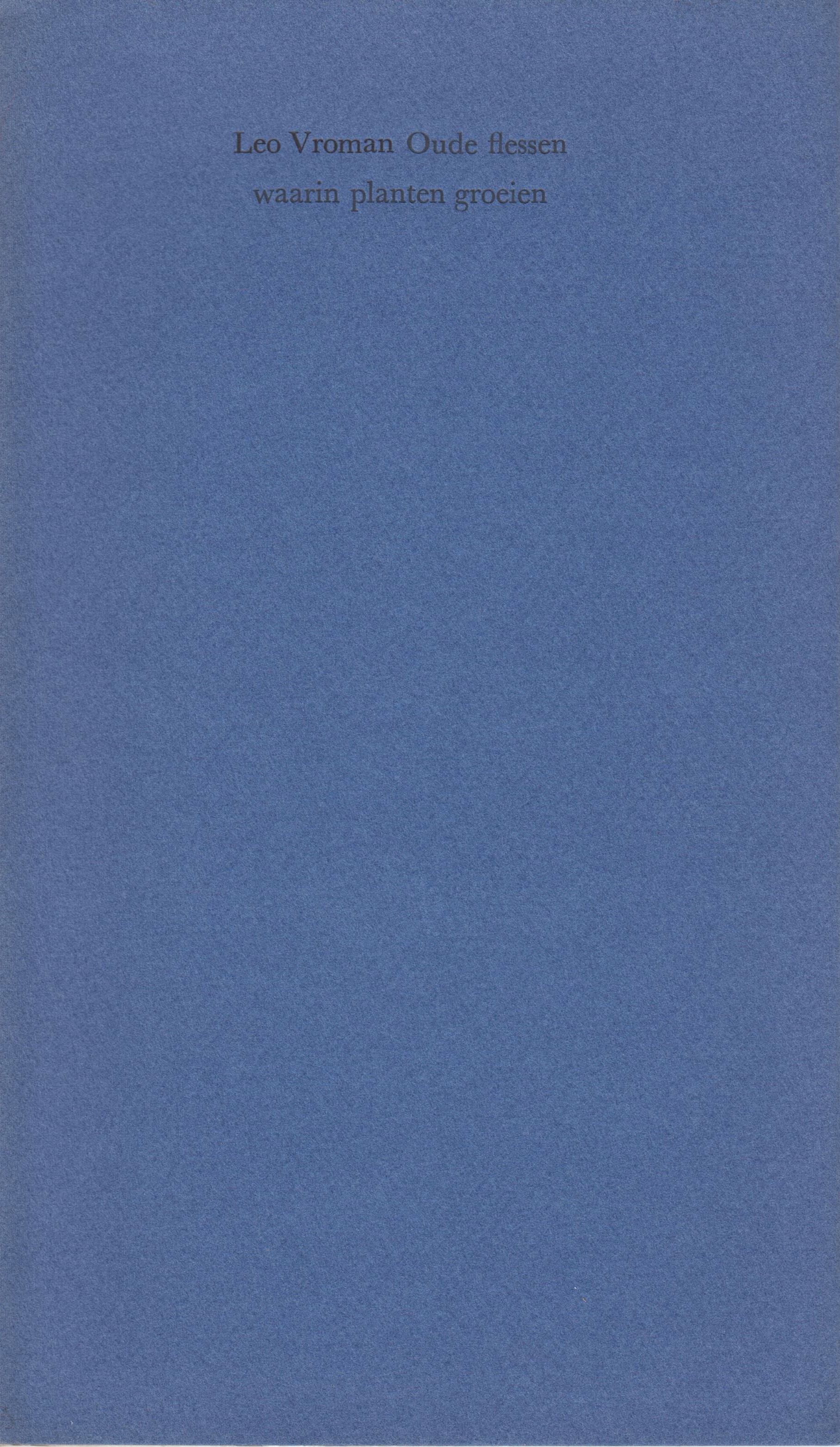 21. VROMAN, Leo Oude flessen waarin planten groeien. Amsterdam, (J. Meijer), 1979. Ingenaaid met omslag. (20) p. Met de hand gezet uit de Baskerville en gedrukt op Zerkall-Bütten in een oplage van 50 genummerde exemplaren.
