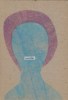 13. [DIJK?, C. van] Het gezwets van tante bets. Haarlem, Carlinapers, 1981. Garenloos in naturel kartonnen platten met daarop een ‘druksel’ met gedrukt titeletiketje (‘tante klets’) in twee kleuren. (12) p. Met de hand gezet en gedrukt in blauw en zwart in een oplage van slechts enkele exemplaren (in het colofon luidt het ‘gedaan in ?!-voud/ te haarlem’.