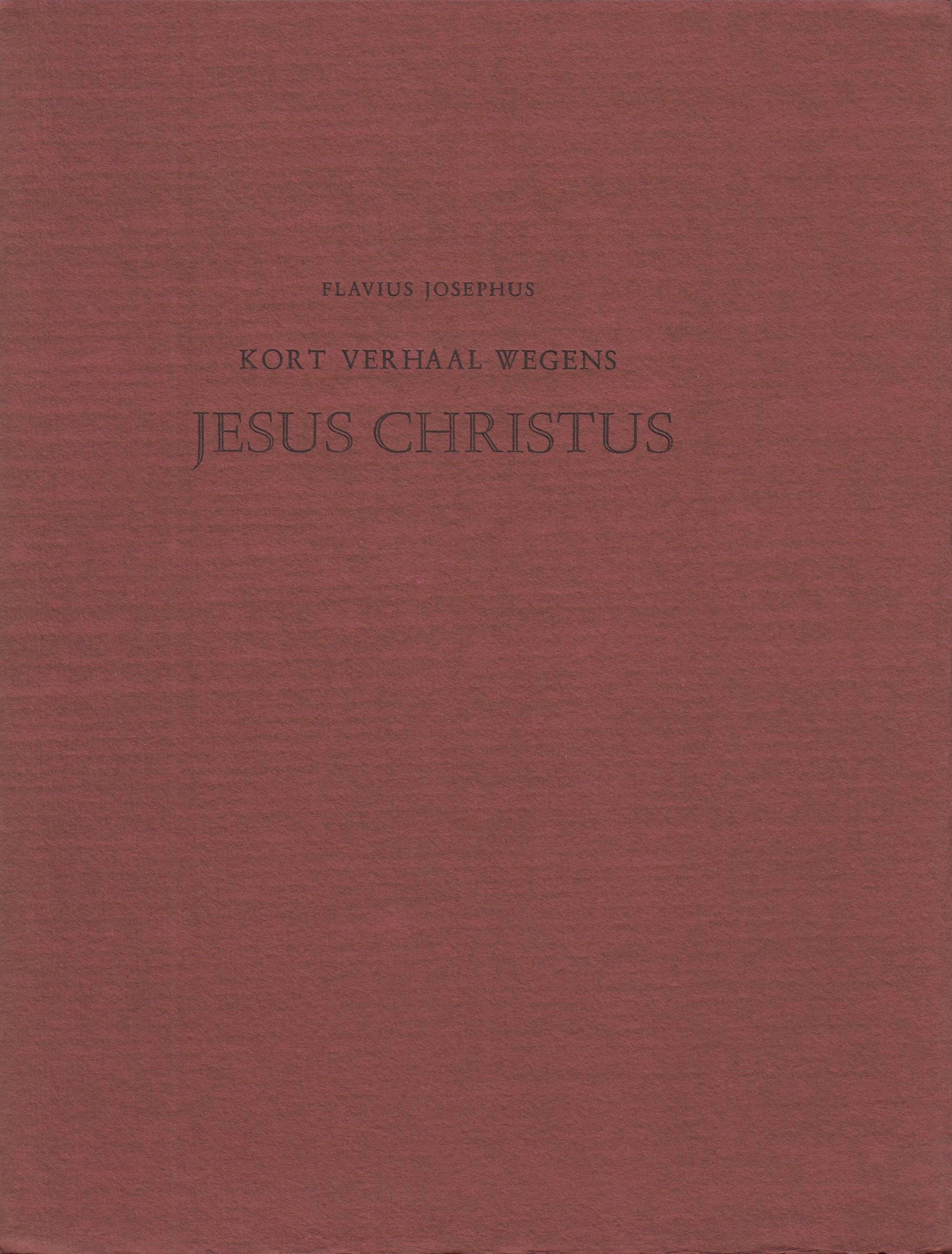 18. FLAVIUS JOSEPHUS Kort verhaal wegens Jesus Christus. Haarlem, Carlinapers, 1978. 20,2 x 15,5 cm. Cahiersteek met omslag. (12) p. Met de hand gezet en gedrukt in een oplage van 12 genummerde exemplaren.