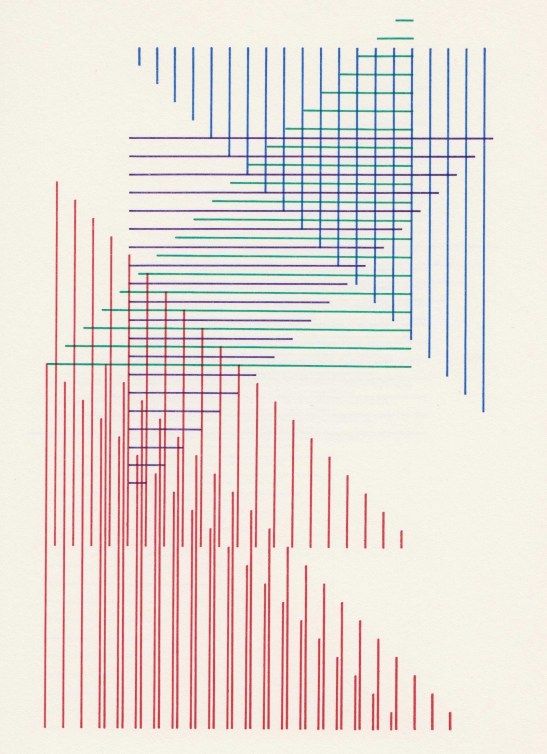 * Abstracte illustraties, die de drukker in het colofon ‘lijntrekkerswerk’ noemt, en die doen denken aan het vrije werk van Piet Zwart.