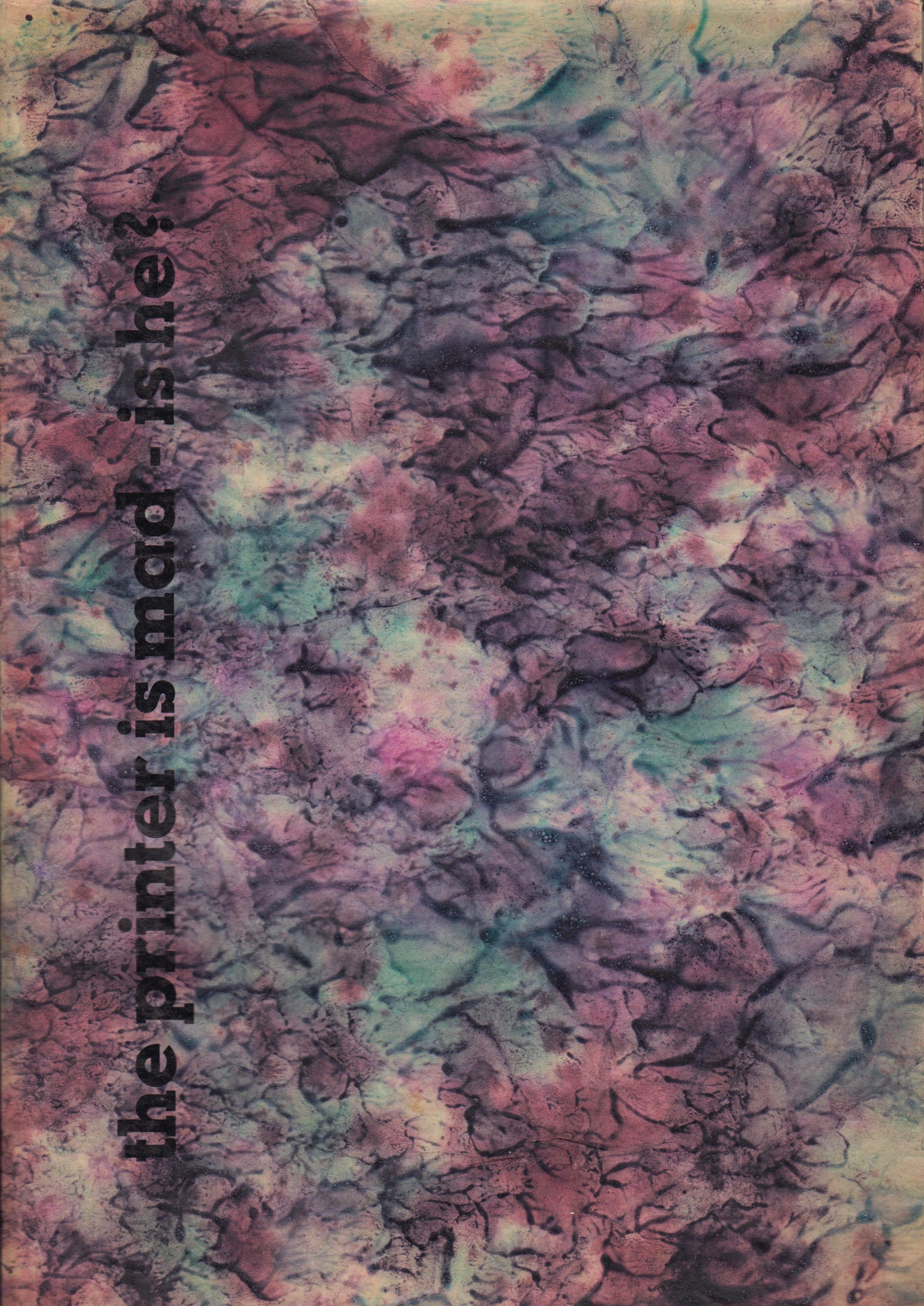 5. BELLAERT, Cornelis the printer is mad – is he? Haarlem, Carlinapers, 1979. 31,2 x 21,0 cm. Karton met omslag. (32) p. Met de hand gezet en gedrukt in rood, geel, groen, blauw en zwart in een oplage van 18 genummerde exemplaren. Omslag aan de randen iets opkrullend en met een enkel scheurtje.